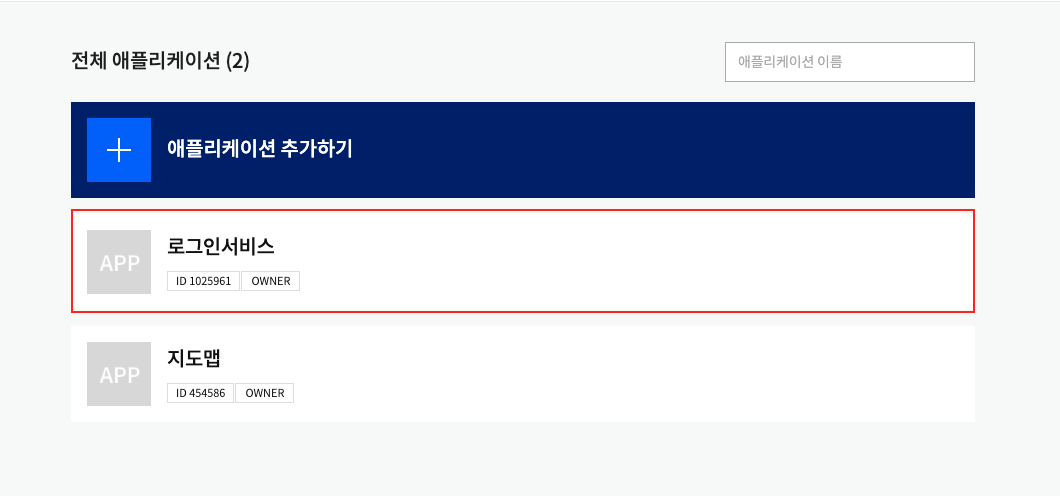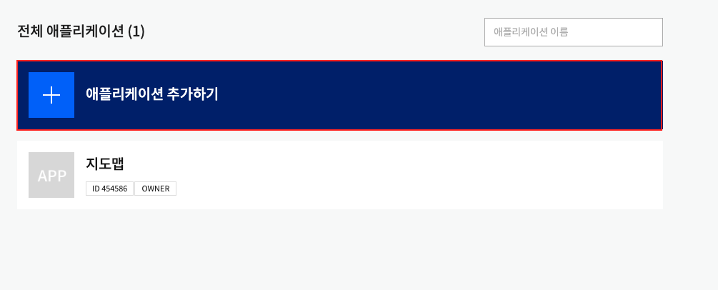 1. 카카오 Developers 사이트에 가서 로그인을 한 후 애플리케이션을 추가한다.